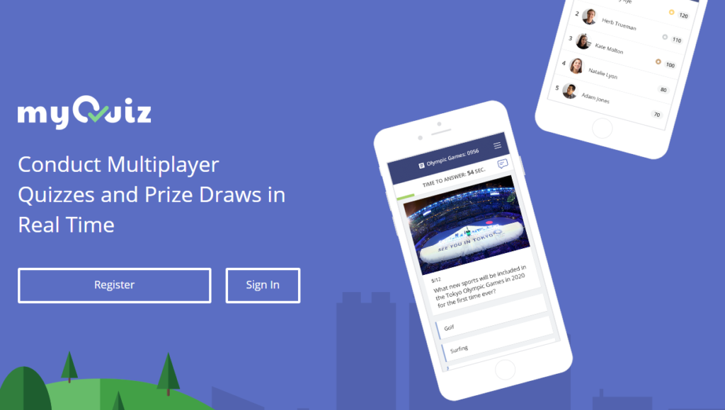 myQuiz is an online service for holding contests and quizzes in real time. Create your own quiz, display it and hook up players from their mobile phones. The questions will show up on the screen, then participants can see them and answer them straight from their phones.