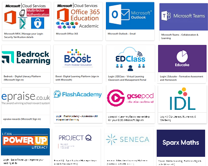Here you will see our wide range of cloud apps which are available in school and from home.